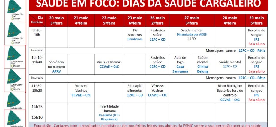 A atividade é dinamizada pelo Programa de Educação para a Saúde, pelo Clube Cargaleiro tem Ciência e pela turma 12ºC, no âmbito do seu Projeto de Cidadania.